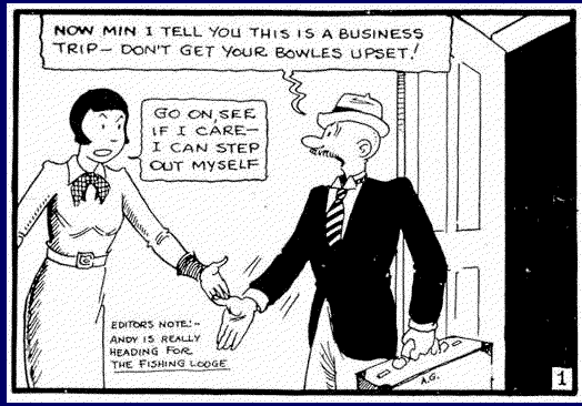 Sydney Smith's, The Gumps, was one of the most popular comic strips of the mid 20's , Revolving around Andy, and homelife with his wife Min. In this eight pager Andy gets away from the little woman for a little carnal diversion. |